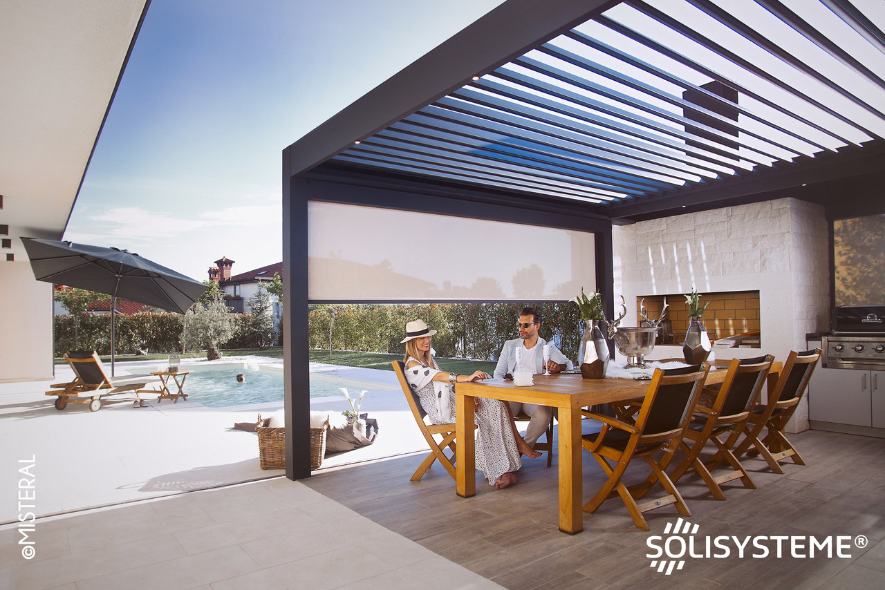 je inovativní zastřešení vaší terasy, která promění a rozšíří váš venkovní prostor. Nastavitelná žaluziová pergola SOLISYSTEME je patentovaná venkovní krytina, která kombinuje tvar a funkci. Bioklimatická pergola se svými hliníkovými žaluziemi umožňuje okamžité přizpůsobení kolísání slunečního záření ručně nebo pomocí dálkového ovládání.